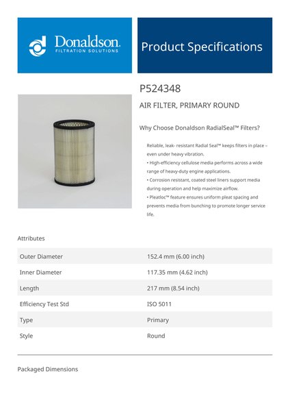 Why Choose Donaldson RadialSeal™ Filters?Reliable, leak- resistant Radial Seal™ keeps filters in place – even under heavy vibration.