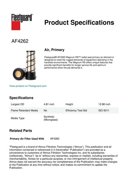 Fleetguard AF4262 Air, Primary
