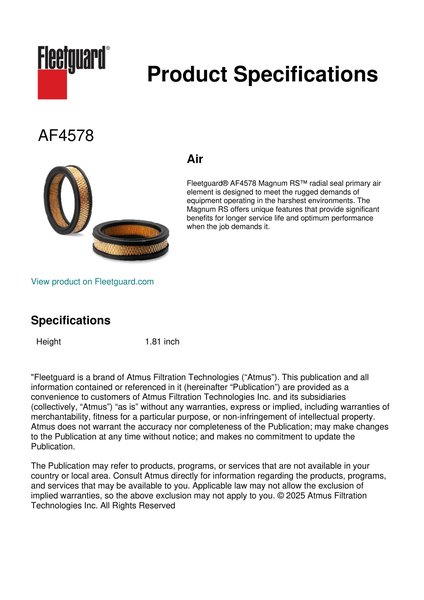 Fleetguard AF4578 Air