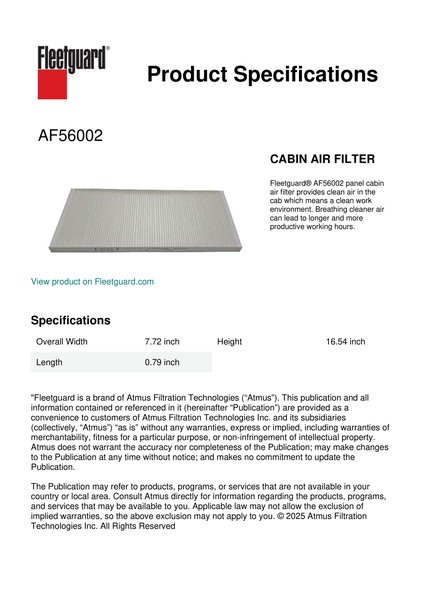 Fleetguard AF56002 Replacement Cabin Air Filter