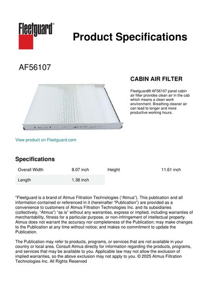 Fleetguard AF56107 Replacement Cabin Air Filter