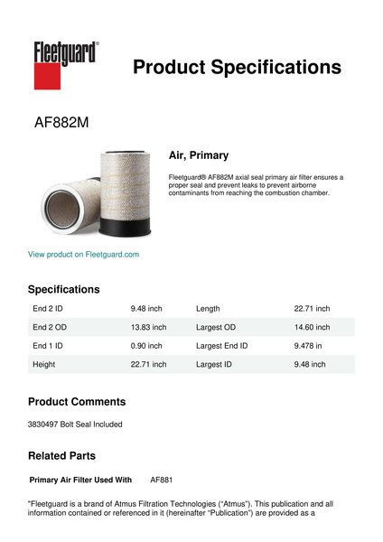 Fleetguard AF882M Air, Primary