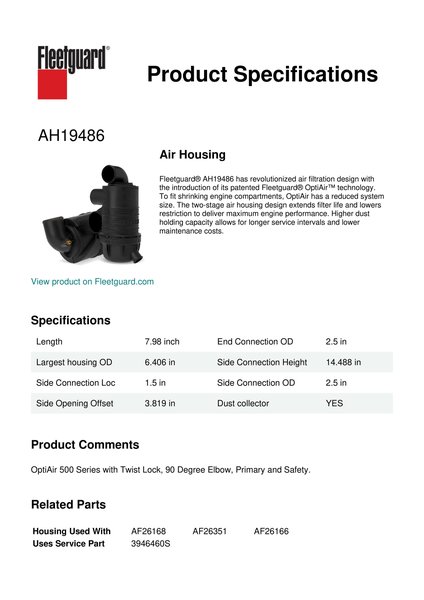 Fleetguard AH19486 Air Intake Systems