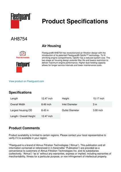 Fleetguard AH8754 Air Intake Systems