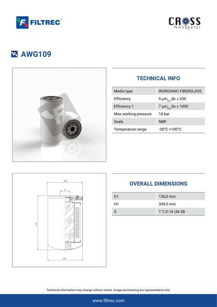 Genuine Filtrec AWG109. This Filtrec element is designed to meet or exceed the quality and performance of brand OEM’s ensuring superior filtration performance and long-lasting durability.
