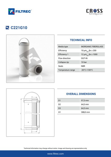 Engineered with their high performance media and a durable design, the C221G10 provides reliable and consistent performance over its lifespan, even in harsh operating environments. When you order from FilterFinder, you can trust that you are getting a reliable and high-quality replacement filter that will keep your system running smoothly.