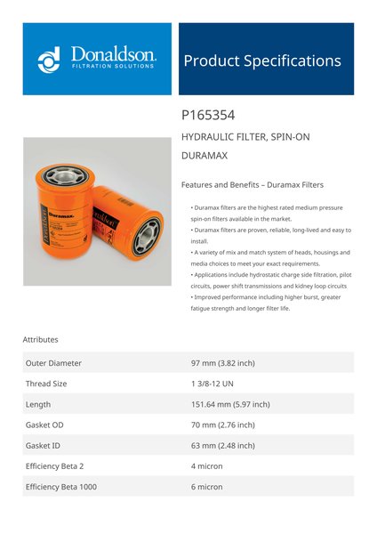 Donaldson P165354 Hydraulic Filter, Spin-On Duramax | Replaces the Fairey Arlon CG46CC5