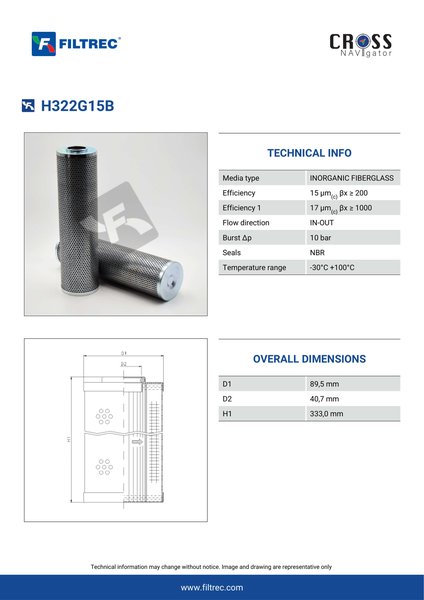 Engineered with their high performance media and a durable design, the H322G15B provides reliable and consistent performance over its lifespan, even in harsh operating environments. When you order from FilterFinder, you can trust that you are getting a reliable and high-quality replacement filter that will keep your system running smoothly.