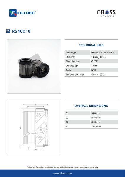Engineered with their high performance media and a durable design, the R240C10 provides reliable and consistent performance over its lifespan, even in harsh operating environments. When you order from FilterFinder, you can trust that you are getting a reliable and high-quality replacement filter that will keep your system running smoothly.