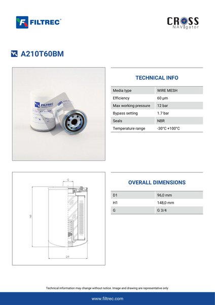 Genuine Filtrec A210T60BM. This Filtrec element is designed to meet or exceed the quality and performance of brand OEM’s ensuring superior filtration performance and long-lasting durability.