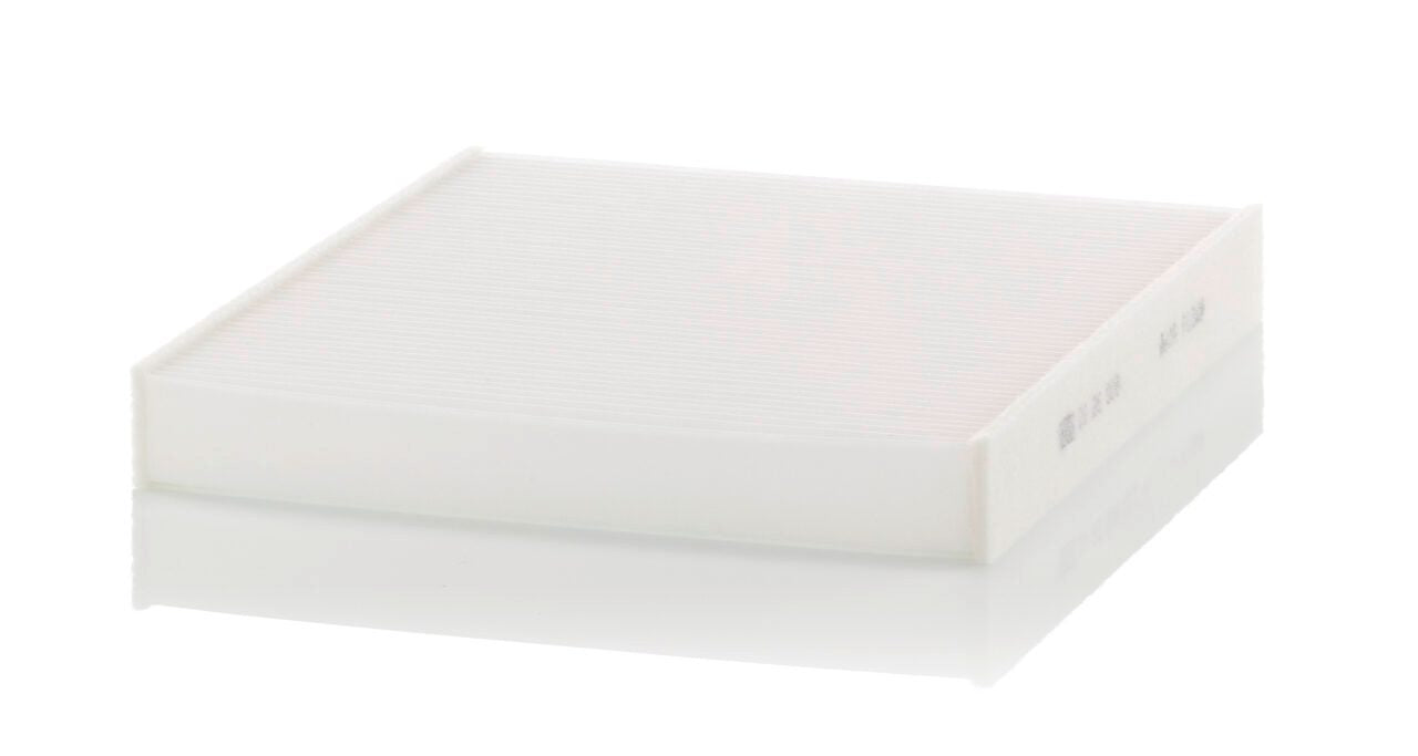 High-quality MANN-FILTER cabin filters offer almost 100% protection against particles such as pollen, diesel soot and tyre abrasion - for a feel-good climate in the vehicle interior and protection of the air conditioning system. Exact fit and perfect tightness ensure constant filtration performance during the entire service interval / Optimum vehicle interior ventilation due to the high air flow capacity.