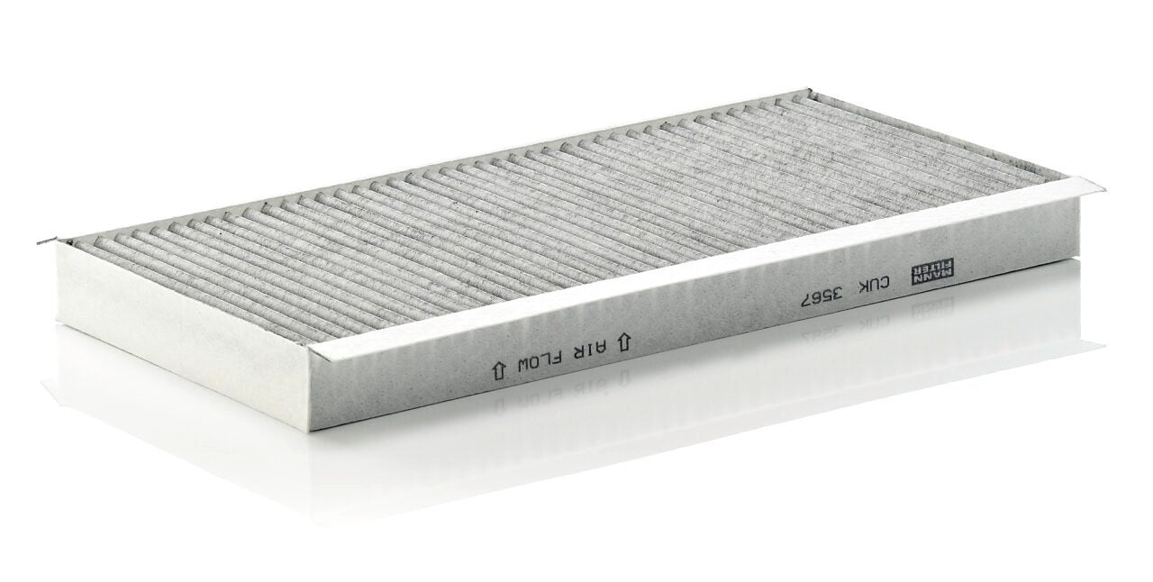 High-quality MANN-FILTER cabin filters with active carbon - nearly 100% protection from particles like pollen, diesel soot & tyre abrasion / Additional protection from harmful gases & unpleasant odour. The trated highly-effective activated carbon gives protection against harmful gases such as ozone, nitrogen oxide or sulphur dioxide and eliminates unpleasant odours during the entire service interval.