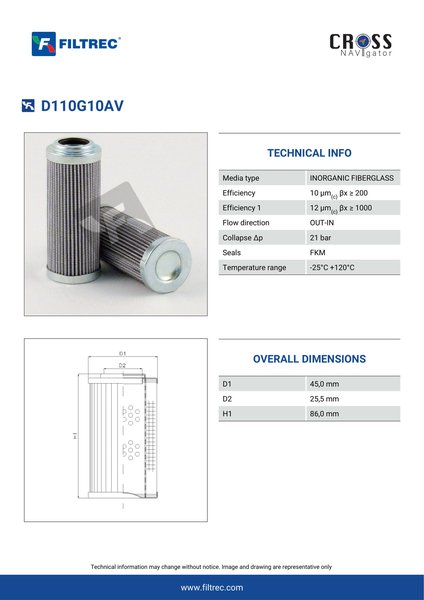 Engineered with their high performance media and a durable design, the D110G10AV provides reliable and consistent performance over its lifespan, even in harsh operating environments. When you order from FilterFinder, you can trust that you are getting a reliable and high-quality replacement filter that will keep your system running smoothly.