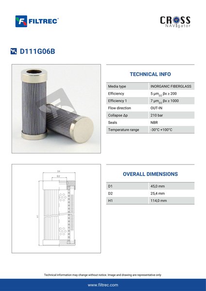 Genuine Filtrec D111G06B. This Filtrec element is designed to meet or exceed the quality and performance of brand OEM’s ensuring superior filtration performance and long-lasting durability.