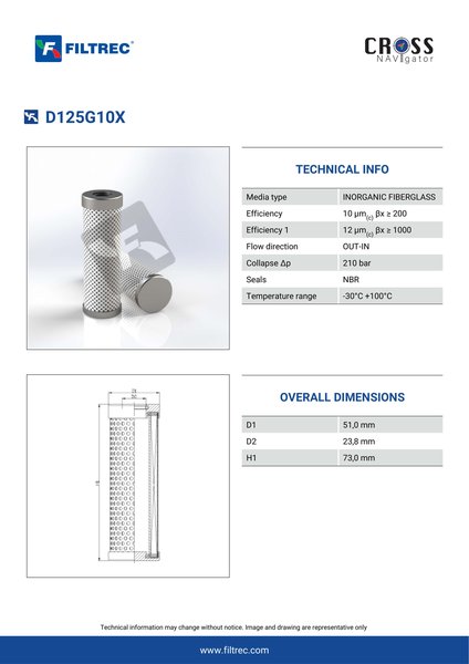 Genuine Filtrec D125G10X. This Filtrec element is designed to meet or exceed the quality and performance of brand OEM’s ensuring superior filtration performance and long-lasting durability.