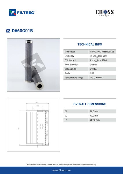 Engineered with their high performance media and a durable design, the D660G01B provides reliable and consistent performance over its lifespan, even in harsh operating environments. When you order from FilterFinder, you can trust that you are getting a reliable and high-quality replacement filter that will keep your system running smoothly.