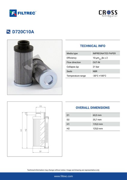 Genuine Filtrec D720C10A. This Filtrec element is designed to meet or exceed the quality and performance of brand OEM’s ensuring superior filtration performance and long-lasting durability.