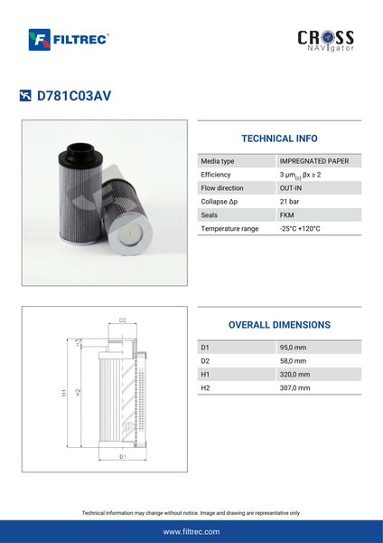Engineered with their high performance media and a durable design, the D781C03AV provides reliable and consistent performance over its lifespan, even in harsh operating environments. When you order from FilterFinder, you can trust that you are getting a reliable and high-quality replacement filter that will keep your system running smoothly.