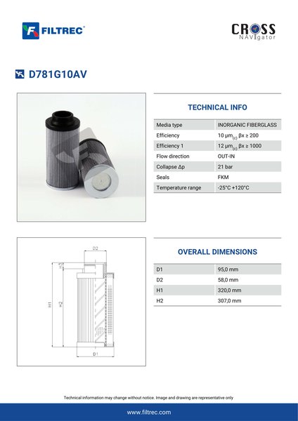 Engineered with their high performance media and a durable design, the D781G10AV provides reliable and consistent performance over its lifespan, even in harsh operating environments. When you order from FilterFinder, you can trust that you are getting a reliable and high-quality replacement filter that will keep your system running smoothly.