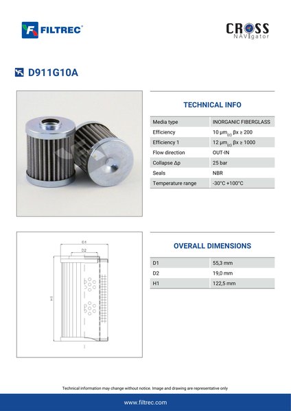 Engineered with their high performance media and a durable design, the D911G10A provides reliable and consistent performance over its lifespan, even in harsh operating environments. When you order from FilterFinder, you can trust that you are getting a reliable and high-quality replacement filter that will keep your system running smoothly.