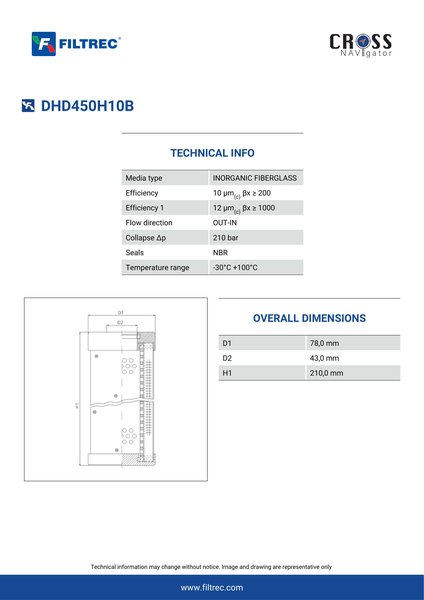 Genuine Filtrec DHD450H10B. This Filtrec element is designed to meet or exceed the quality and performance of brand OEM’s ensuring superior filtration performance and long-lasting durability.Engineered with their high performance media and a durable design, the DHD450H10B provides reliable and consistent performance over its lifespan, even in harsh operating environments. When you order from FilterFinder, you can trust that you are getting a reliable and high-quality replacement filter that will keep your system running smoothly.