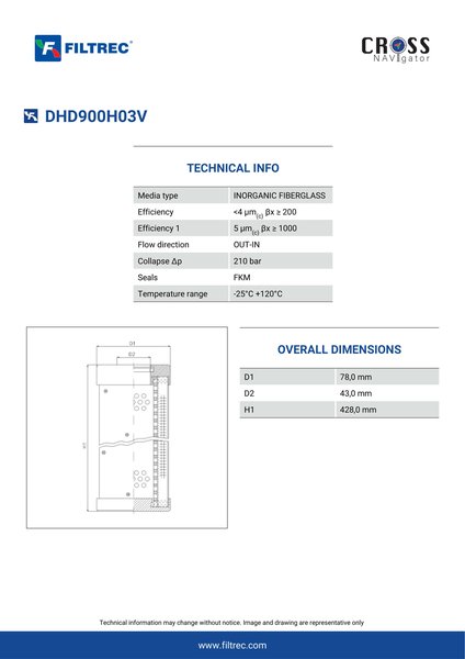 The efficiency of the element is shown using the Micron (µ) and Beta (β) ratings. The micron rating indicates the size of the particle being filtered and the beta rating the efficiency, calculated as 1/β.