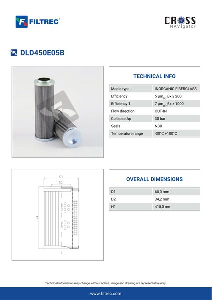 Genuine Filtrec DLD450E05B. This Filtrec element is designed to meet or exceed the quality and performance of brand OEM’s ensuring superior filtration performance and long-lasting durability.