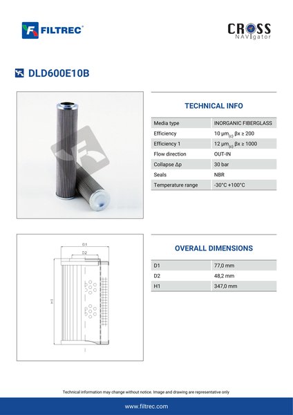 Genuine Filtrec DLD600E10B. This Filtrec element is designed to meet or exceed the quality and performance of brand OEM’s ensuring superior filtration performance and long-lasting durability.