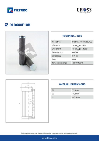 Genuine Filtrec DLD600F10B. This Filtrec element is designed to meet or exceed the quality and performance of brand OEM’s ensuring superior filtration performance and long-lasting durability.
