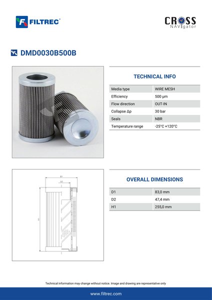 Genuine Filtrec DMD0030B500B. This Filtrec element is designed to meet or exceed the quality and performance of brand OEM’s ensuring superior filtration performance and long-lasting durability.