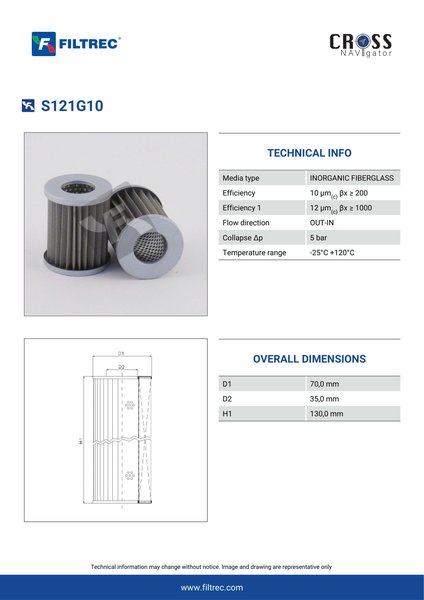 Genuine Filtrec S121G10. This Filtrec element is designed to meet or exceed the quality and performance of brand OEM’s ensuring superior filtration performance and long-lasting durability.