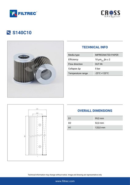 Genuine Filtrec S140C10. This Filtrec element is designed to meet or exceed the quality and performance of brand OEM’s ensuring superior filtration performance and long-lasting durability.
