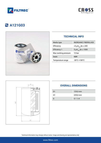 Genuine Filtrec A121G03. This Filtrec element is designed to meet or exceed the quality and performance of brand OEM’s ensuring superior filtration performance and long-lasting durability.