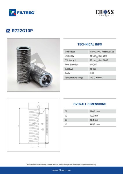 Engineered with their high performance media and a durable design, the R722G10P provides reliable and consistent performance over its lifespan, even in harsh operating environments. When you order from FilterFinder, you can trust that you are getting a reliable and high-quality replacement filter that will keep your system running smoothly.