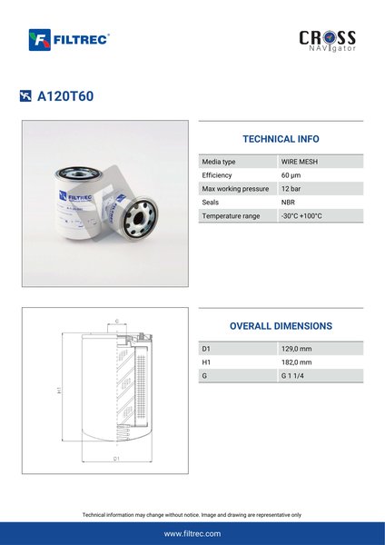 Filtrec A120T60 Replaces the FilterFinder FF200118B