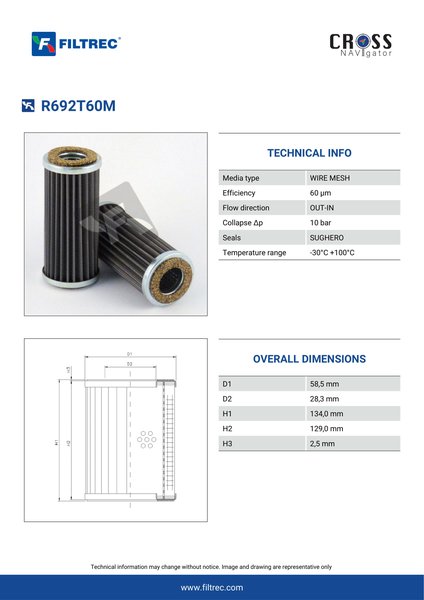 Filtrec R692T60M Replaces the FilterFinder FF200478B