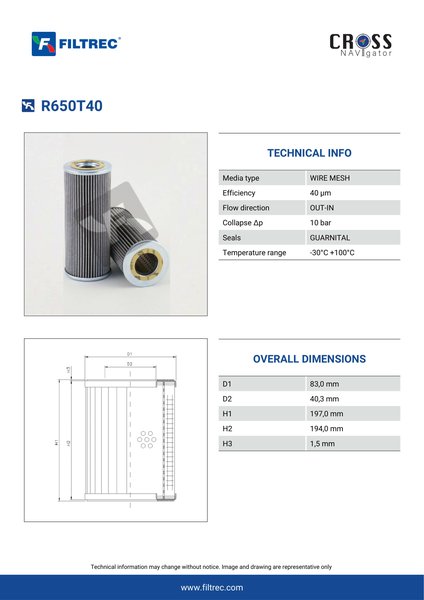 Filtrec R650T40 Replaces the FilterFinder FF200486B