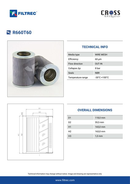 Filtrec R660T60 Replaces the FilterFinder FF200494B