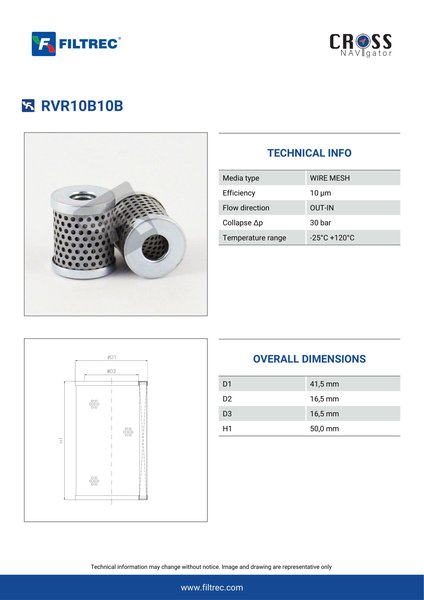 Filtrec RVR10B10B Replaces the FilterFinder FF200721B