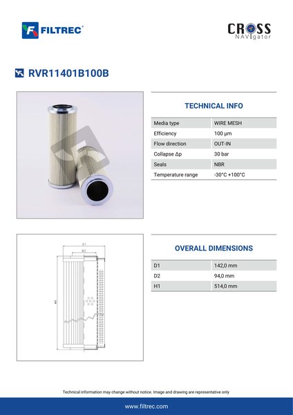 Filtrec RVR11401B100B Replaces the FilterFinder FF200757B