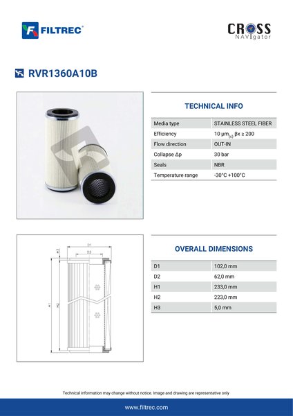 Filtrec RVR1360A10B Replaces the FilterFinder FF200866B