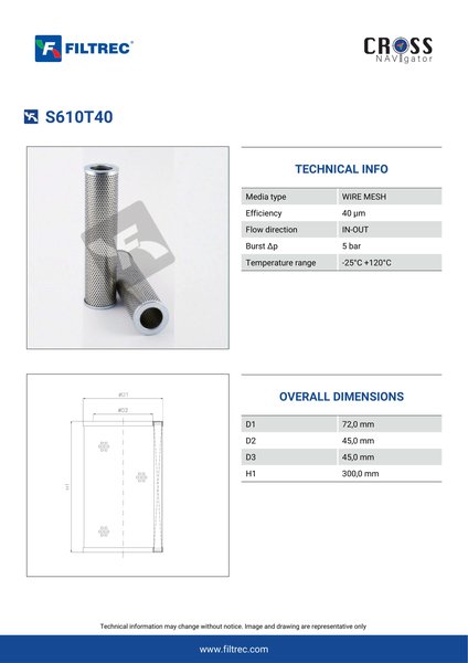 Genuine Filtrec S610T40. This Filtrec element is designed to meet or exceed the quality and performance of brand OEM’s ensuring superior filtration performance and long-lasting durability.
