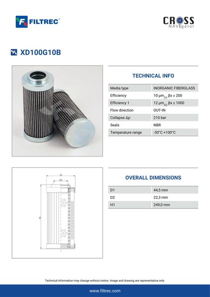 Filtrec XD100G10B Replaces the FilterFinder FF203706B