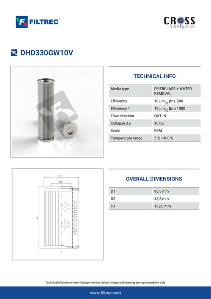 The efficiency of the element is shown using the Micron (µ) and Beta (β) ratings. The micron rating indicates the size of the particle being filtered and the beta rating the efficiency, calculated as 1/β.