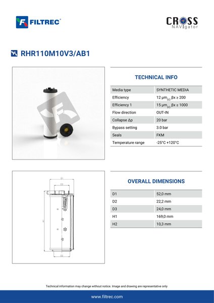 Filtrec RHR110M10V3/AB1 Replaces the FilterFinder FF205015B