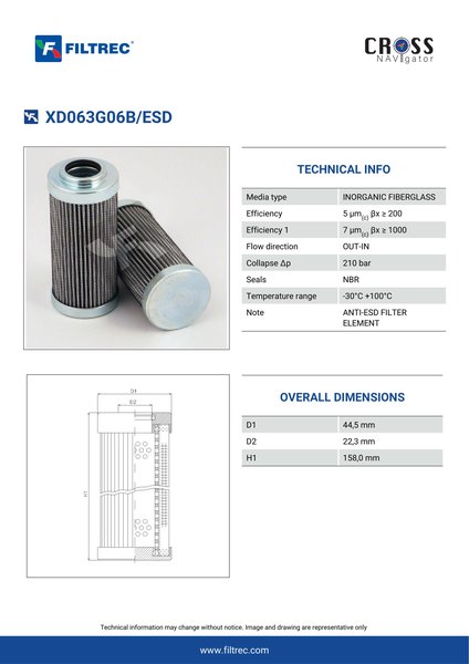 The efficiency of the element is shown using the Micron (µ) and Beta (β) ratings. The micron rating indicates the size of the particle being filtered and the beta rating the efficiency, calculated as 1/β.