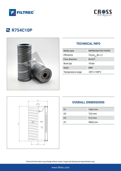 The efficiency of the element is shown using the Micron (µ) and Beta (β) ratings. The micron rating indicates the size of the particle being filtered and the beta rating the efficiency, calculated as 1/β.