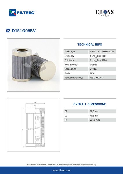 Filtrec D151G06BV Replaces the FilterFinder FF212191B