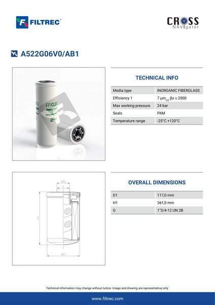 The efficiency of the element is shown using the Micron (µ) and Beta (β) ratings. The micron rating indicates the size of the particle being filtered and the beta rating the efficiency, calculated as 1/β.