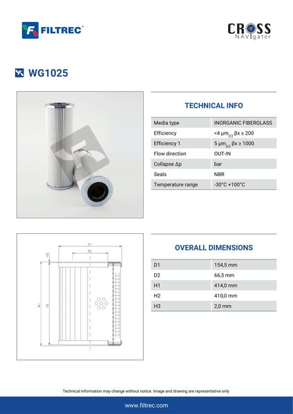 Filtrec WG1025 Replaces the FilterFinder FF216619B